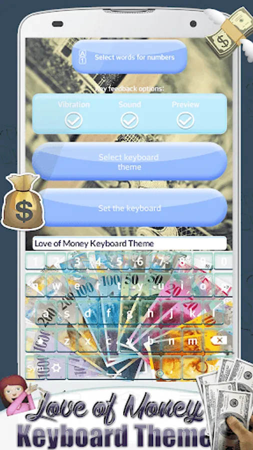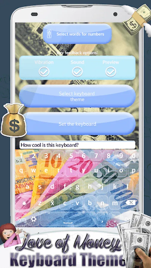 🏦 Money themes will suit your phone keyboard perfectly and give it a brand new look!