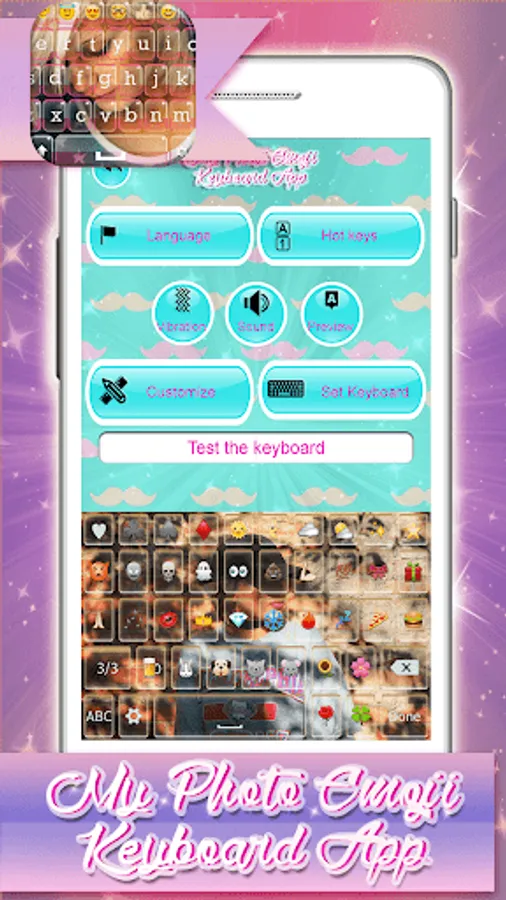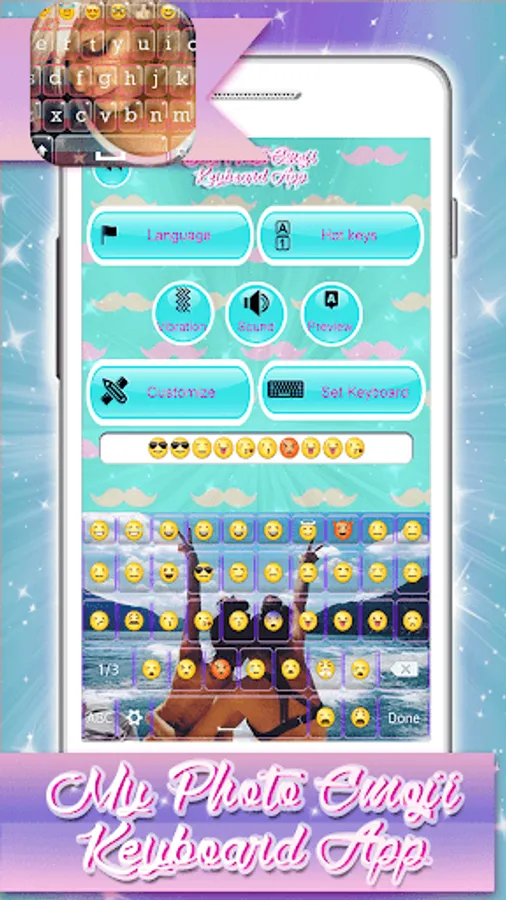 ☺ Let yourself experience something new with this amazing emoji keypad color changer! If you’re in need of a cool photo keyboard with emoji, check out what we have for you in the app store for Androd! You can now easily set your own selfie as you of keyboard background and you’ll definitely have the cutest keyboard for mobile phones. Now you don't have to wonder how to get a picture keyboard, because our free keyboard apps will do it for you. Dive into our emoji list and meet all the emoji faces. Personalize your phone in matter of seconds downloading this “emoji keyboard” with beautiful pictures in the background completely free of charge and show everyone you have the best mobile keypad!