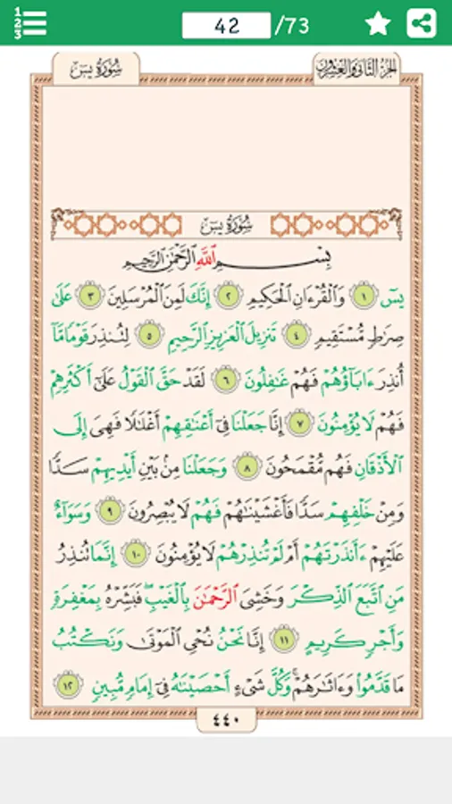 Holy Quran has a real page turning effect, elegant style and smooth Nastaliq font for full page readability. Don't bother yourself by scrolling up and down; now easily recite as actual printed Quran page by page.