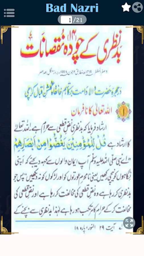 Badnazri (Lustful Glance) Urdu book by Hazrat Pir Maulana Zulfiqar Ahmed Naqashbandi This Islamic book available for free download apk format.. This Islami book Published by Maktaba Milat Deo Band UP India. read about Bad Nazri ki tabahkarian aur ilaj and Bad Nazri k Nuqsanat in Urdu. You may read Nazar e Bad (Evil Eyes) by Irshad ul Asri and Badnazri Aur Ishq e Mijazi ki tabah kariyan aur us ka ilaj by Hazrat Maulana Shah Hakeem Muhammad Akhtar