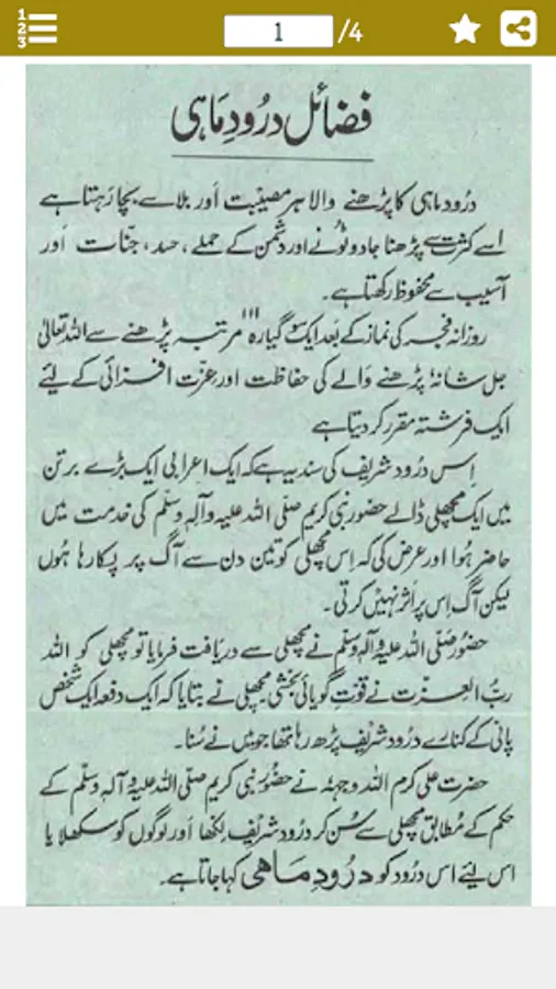 Darood-e-mahi ki barhi fazilaten bayan ki gai hen. jo shakhs is darood-e-mahi parhe ga marte dam tak us ka imaan INSHAH ALLAH qaim rahega.ALLAH ke ehsanat is par barhte rahen ge.is ke gunahon ki aag bujh jaey gi.is ki umar ache kaamo men guzre gi.iski umar men numaya barkat hogi.iski aulad men barkat hogi.iski aulad tabahi aur barbadi se har halat men bachi rahegi.is ke saare ghar men har waqt barkat hogi.is ke ghar men har haalat men salamti aur aman hoga.is ke maal aur asbab men barkat hogi.darood-e-mahi parhne wale ki 4 pushton tak barkat rahegi.