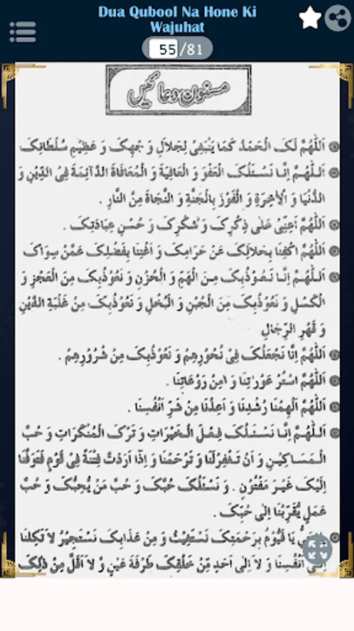 Hamari Web brings you an exclusive database of Masnoon Duain in Urdu, and Masnoon Duain in English on this platform. Duain with Urdu translations is for your comfort and understanding. In Pakistan Masnoon Duain in Roman is widely preferred and browsed, therefore you can find duas in this version on this app.