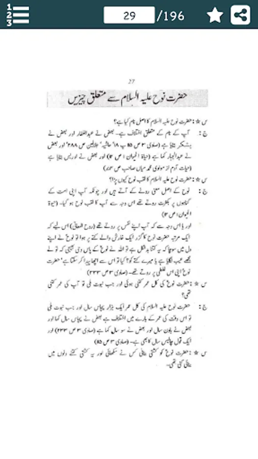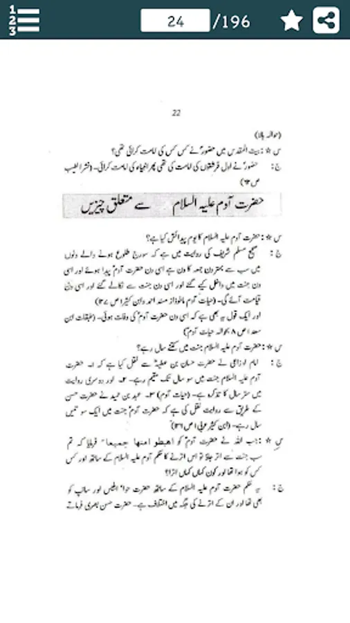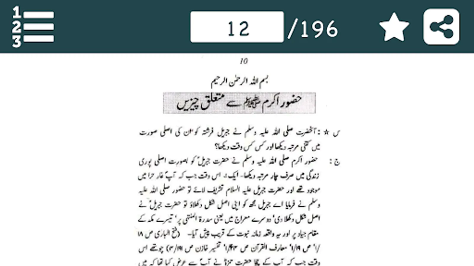 An app in urdu language that has wide range (zakheera) of Islamic Information in the form of Questions and Answers (sawalan jawaban). This app contains information of various famous prophets like Hazrat Muhammad PBUH, Hazrat Adam A.S, Hazrat Eesa (Jesus) A.S, Hazrat Moosa A.S and many more. This app also contains information about Sahabah (companions) like Hazrat Abu Bakar Siddique R.A, Hazrat Umar Farooq R.A, Hazrat Usman R.A and Hazrat Ali R.A. Many other topics have been discussed in this app e.g. Quran, Hadees, Namaz (salah), Roza, Zakat and Hajj etc.