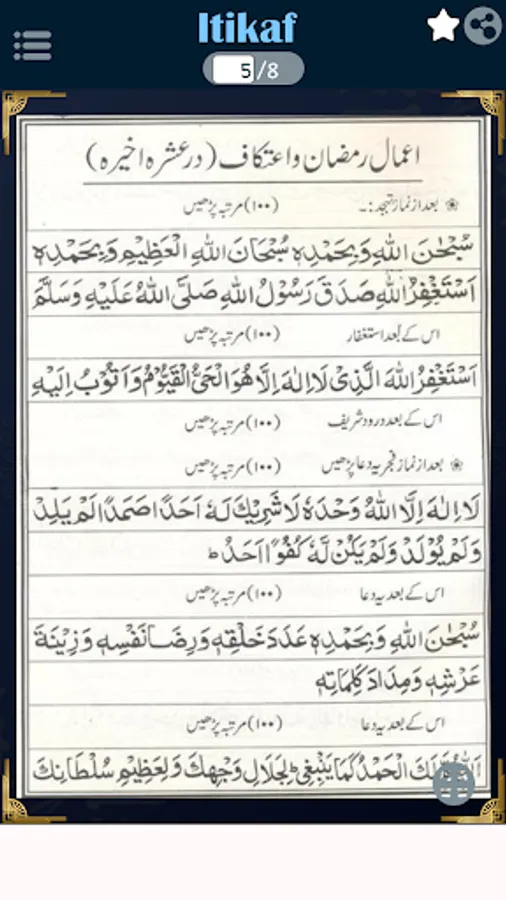 Itikaf or Etikaf or E'tikaf is a practice in the Islamic faith. It consists of a period of retreat in a mosque, for a certain number of days in accordance with the believer's own wish.That number of days is 10 days. Ramadan is a perfect opportunity to do this. During Itikaf the people spend the last set of Ramadan in the mosque worshipping Allah. They spend their nights in worship by reciting verses from the Qur'an and praying thahajjud (Salat). During Itikaf, the believers stay at the mosque. E'tikaf is performed during the last set of Ramadan because "laylatul qadr" (the night when the Quran was revealed) is most probably expected in it. The Muslims also worship ALLAH more and reflect about what they have done in the past.