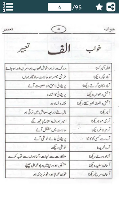 Is app se ye madad le saktay hain keh jo khwab aap ne dekha hay is ki tabeer jaan lein. talash karne mein aasani kay liye pages mein alif se ye tak ki tabeerein alag alag ki gae hain. umeed hay kay hamari ye koshish aap kay liye faida mand sabit hogi.