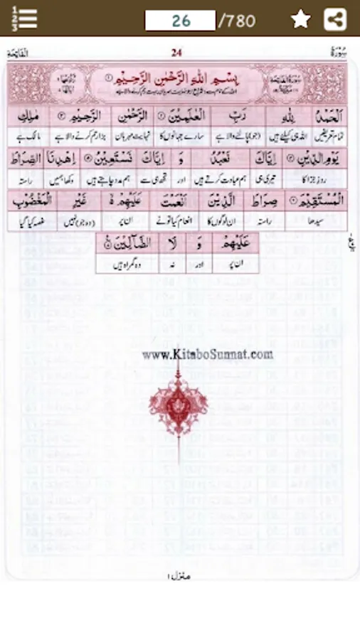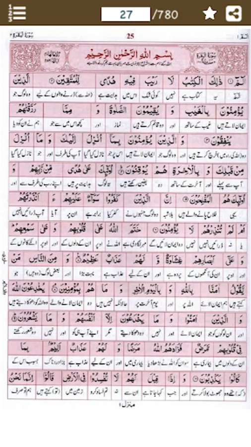 12 line Al - Quran application gives you easiest way to read Holy Quran. This Application included 12 lines per page Holy Quran that is Commonly used by huffaz ( Hafiz ) for hifz e Quran and easy to understand with word by word Urdu translation. Each page has 8 rows of text which helps students remember the location of text. Al Quran with Urdu Translation is a concentrate of the best quran reciters in the world, an amazing user interface design and the best set of features. Beautiful Arabic font and Urdu Translation of Coran. This app doesn't need any external data download after installation. This is only a single file download, just install and enjoy the app. This app includes Search Bar facility in choosing the desired Surah of the Holy Book. Bookmarks Allows the user to favorite or save a particular part of the recital process in order to continue from the same place where it left and Urdu Translation Helps in better understanding the concepts and revelations of Quran by interpreting the meaning of Arabic language in Urdu. this app also provide you the facility to Share it with your friends on Facebook, Twitter, WLAN, Bluetooth, WiFi Direct etc...