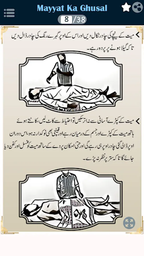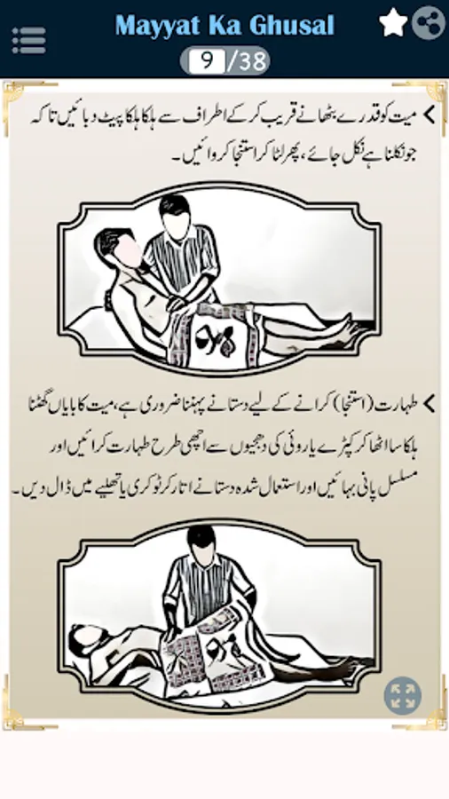 5. Aurat hi aurat ko ghusl de sakti hai aur mard hi mard ko ghusl de sakta hai siwaye iske ke mard aur biwi ek dusre ko ghusl de sakte hai.