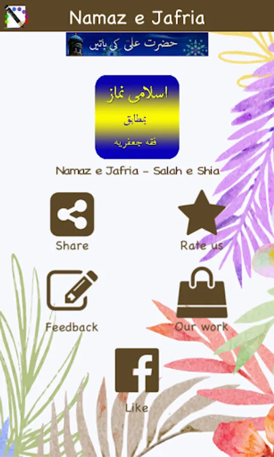 This app contains Islami Namaz (Prayer) method according to the Fiqah e Jafaria in Urdu language. It includes basic beliefs of Islam, Wudhu, Tayyamum, compelete Namaz, important Duas and Aamal of especial occasions.