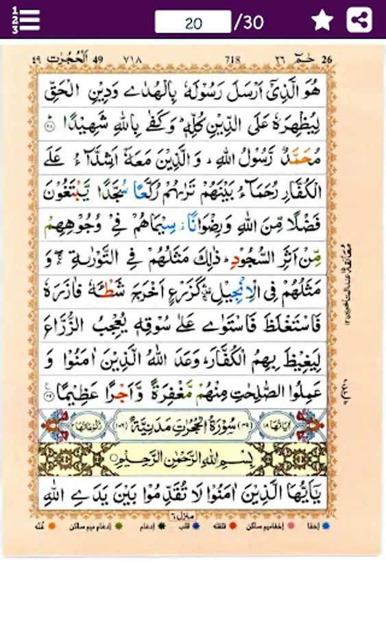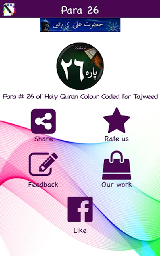 The Holy Quran is divided into thirty equal parts also known as thirty PARA's (chapters). In this app you can recite the 26th PARA (chapter).