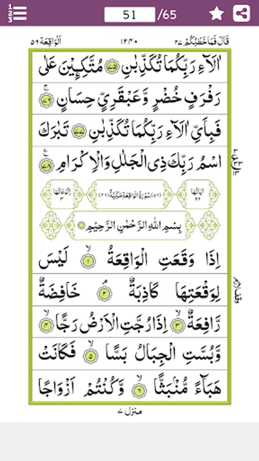 Al-Waqiya (Arabic: سورة الواقعة; Surat al-Waqiah; "The Inevitable" or "The Event") is the 56th surah (chapter) of the Qur'an. Muslims believe it was revealed in Mecca (see Meccan surah), specifically around 7 years before the Hegira (622), the migration of Hazrat Muhammad (PBUH) to Medina. The total number of verses in this surah are 96. It mainly discusses the afterlife according to Islam, and the different fates people will face in it.