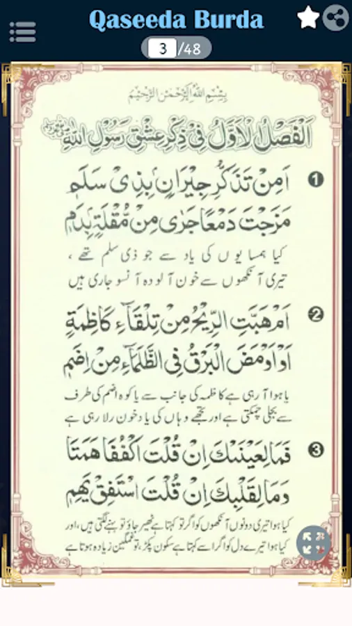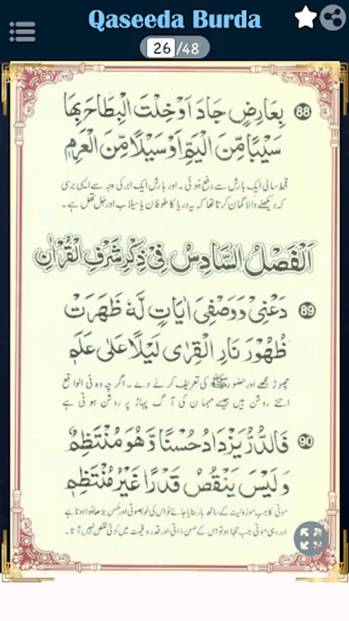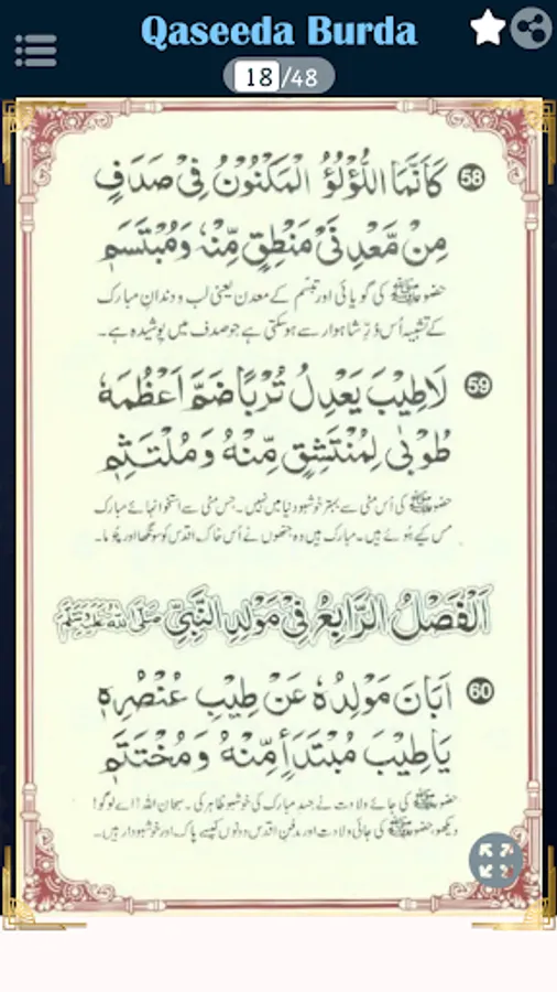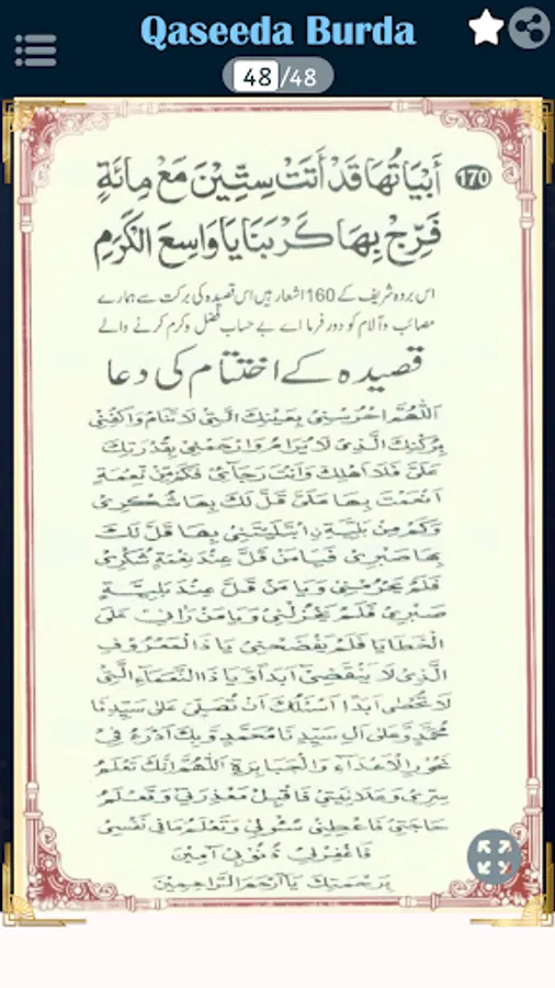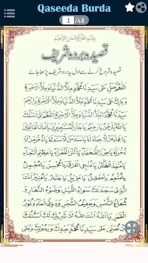 The Qasida Al-Burda (The Poem of the Mantle), known as The Burdah, is a poem in praise of The Prophet ﷺ. It was composed by Al Busiri in the 7th century Hijri and is one of the most widely recited and memorised poems in the world. The actual title of the poem is The Celestial Lights in Praise of the Best of Creation (الكواكب الدرية في مدح خير البرية).