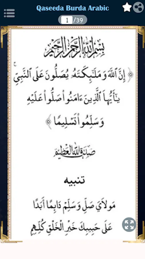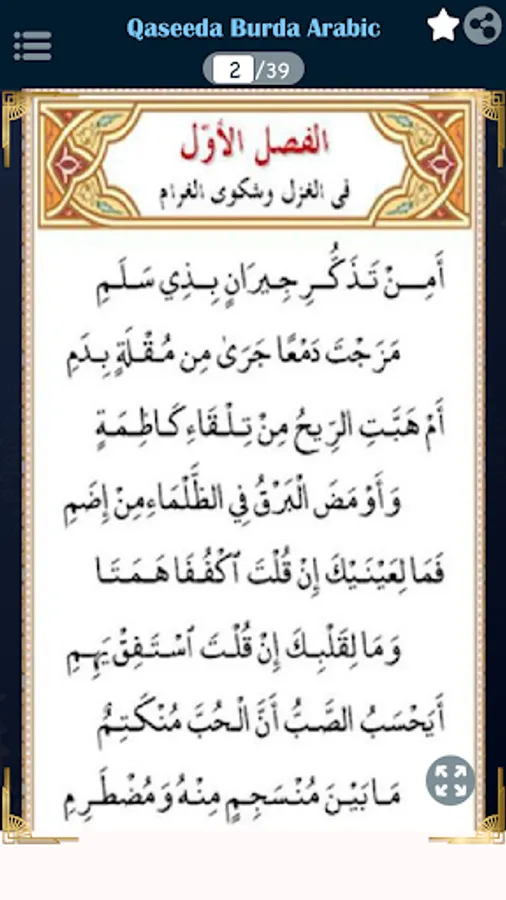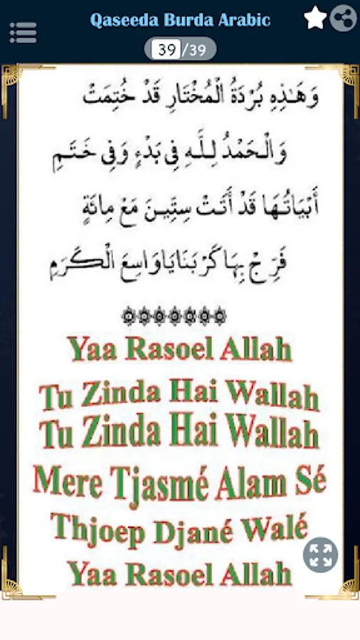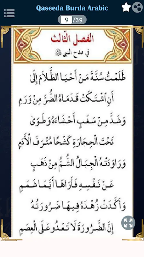 The Qasida Al-Burda (The Poem of the Mantle), known as The Burda, is a poem in praise of The Prophet ﷺ. It was composed by Al Busiri in the 7th century Hijri and is one of the most widely recited and memorised poems in the world. The actual title of the poem is The Celestial Lights in Praise of the Best of Creation (الكواكب الدرية في مدح خير البرية).