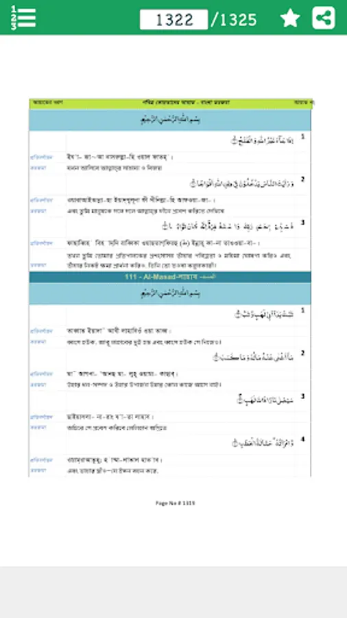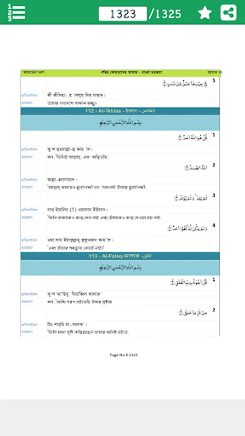 Holy Quran has a real page turning effect, elegant style and smooth Nastaliq font for full page readability. Don't bother yourself by scrolling up and down; now easily recite as actual printed Quran page by page.
