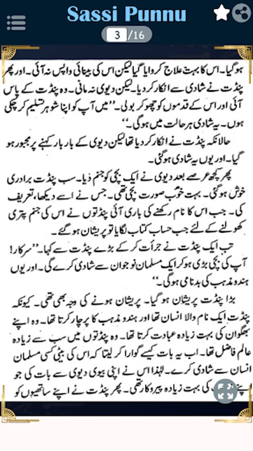 Sassi grew up to be as beautiful as the fairies of heaven. Stories of her beauty reached Punnu and he became desperate to meet Sassi. The handsome young Prince therefore travelled to Bhambore. He sent his clothes to Sassi's father (a washerman) so that he could catch a glimpse of Sassi. When he visited the washerman's house, they fell in love at first sight. Sassi's father was dispirited, hoping that Sassi would marry a washerman and no one else. He asked Punnu to prove that he was worthy of Sassi by passing the test as a washerman. Punnu agreed to prove his love. While washing, he tore all the clothes as, being a prince, he had never washed any clothes; he thus failed the agreement. But before he returned those clothes, he hid gold coins in the pockets of all the clothes, hoping this would keep the villagers quiet. The trick worked, and Sassi's father agreed to the marriage.