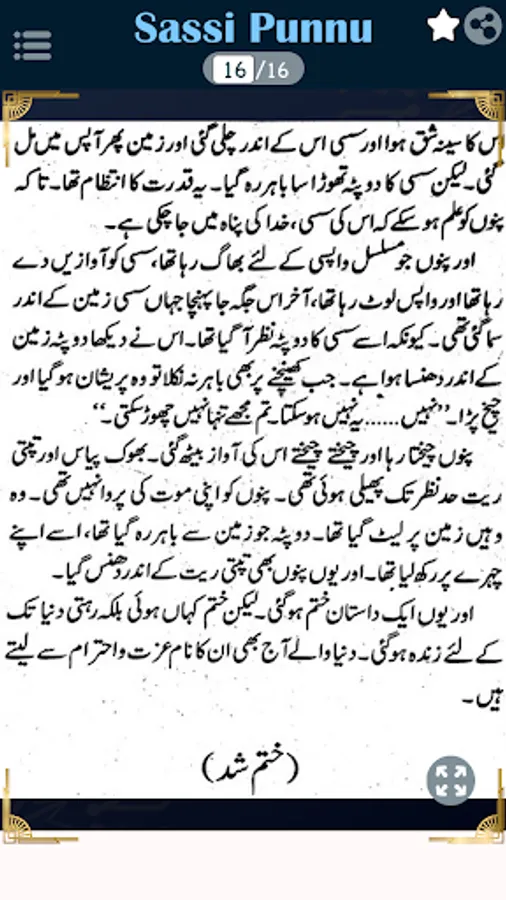 When Sassi woke up the following morning, she realized that she was cheated by her brothers-in-law. She became mad with the grief of separation from her beloved and ran barefoot towards the town of Kech Makran. To reach it, she had to cross miles of desert. Alone, she continued her journey until her feet were blistered and her lips were parched from crying "Punnhun, Punnhun!". The journey was full of dangerous hazards. She was thirsty, when she saw a shepherd coming out of a hut. He gave her some water to drink. Seeing her incredible beauty, he tried to force himself on Sassi. Sassi escaped and prayed to God to hide her. God listened to her prayers, land shook and split and Sassi found herself buried in the valley of mountains. When Punhun woke in Makran he could not stop himself from running back to Bhambore. On the way he called out "Sassi, Sassi!" to which the shepherd told Punnhun the whole story. Punnhun also lamented the same prayer, the land shook and split again and he was also buried in the same mountain valley as Sassi. The legendary grave still exists in this valley. Shah Abdul Latif Bhittai sings this historic tale in his Sufi poetry as an example of eternal love and union with divine. But according to the famous tale by Hashim (poet) (Hashim Shah) Sassi dies while crossing the desert.