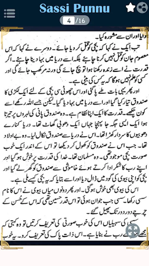 Sassi was the daughter of the Raja of Bhambore in Sindh (now in Pakistan). Upon Sassi's birth, astrologers predicted that she was a bane on the royal family's honour. The Raja ordered that the child be put in a wooden box and thrown in the Sindhu. A washerman of the Bhambore village found the wooden box and the child inside. The washerman believed the child was a blessing from God and took her home. As he had no children of his own, he decided to adopt her.