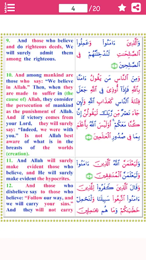 1. The Messenger of Allah (s.a.w.s.) said: One who recites Sura Ankabut for him are ten rewards equal to the number of believers and hypocrites.