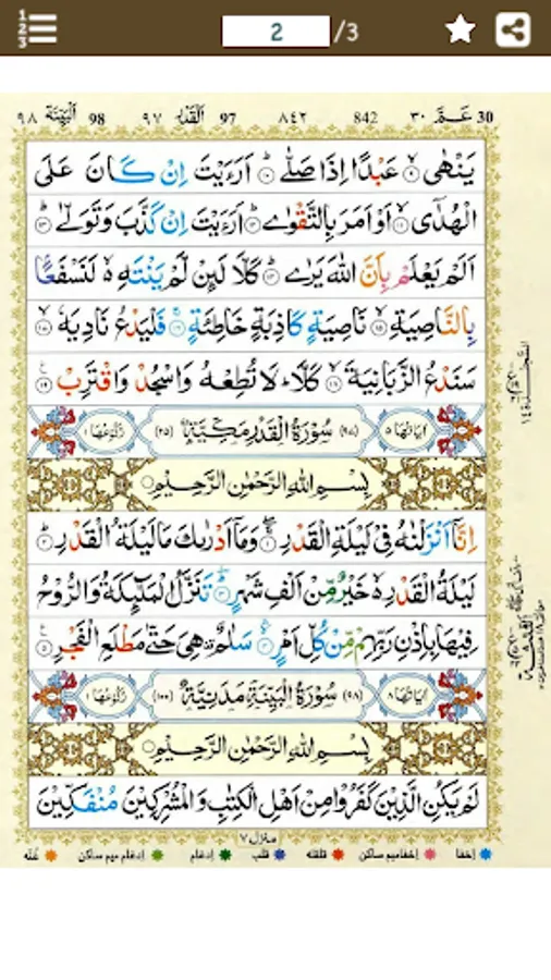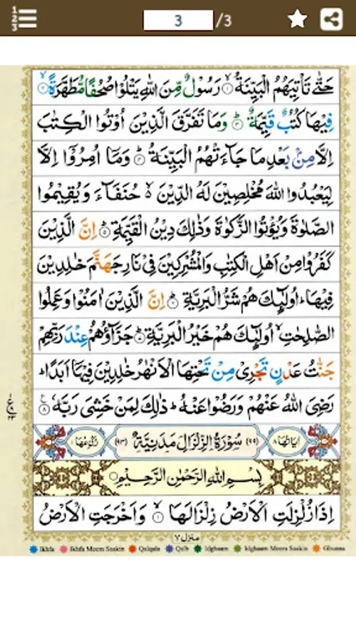 المصحف المعلم جزء 30 سورة البينـــة ترتيب السورة فى المصحف (98) عدد آياتها (8)