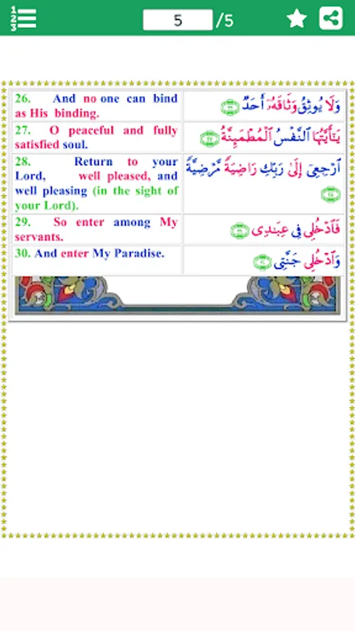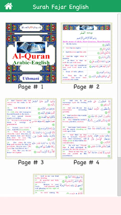 Surat al-Fajr (Arabic: سورة الفجر, “The Dawn”, “Daybreak”) is the eighty-ninth chapter (sura) of the Quran with 30 verses. This Surah is positioned in Para 30 which is also known as Juz Amma (Juz' 30). The sorat describes destruction of disbelieving peoples: the Ancient Egyptians, the people of Iram of the Pillars, and Mada'in Saleh. It condemns those who love wealth and look with disdain upon the poor and orphans. Righteous people are promised Paradise – the final verse says "And enter you My Paradise!". The Surah (sorah) is so designated after the word wal-fajr with which it opens.