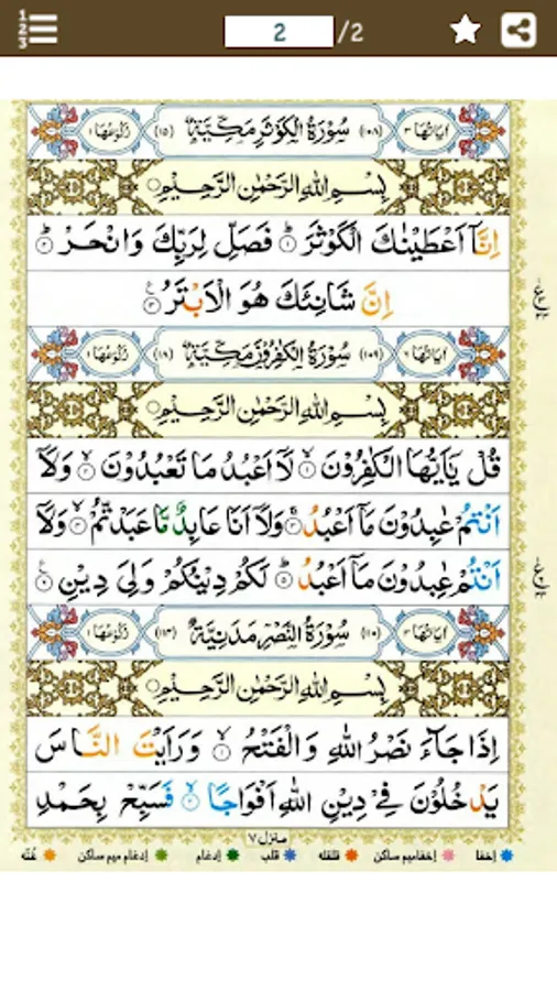 المصحف المعلم جزء 30 سورة الكــــوثر ترتيب السورة فى المصحف (108) عدد آياتها (3