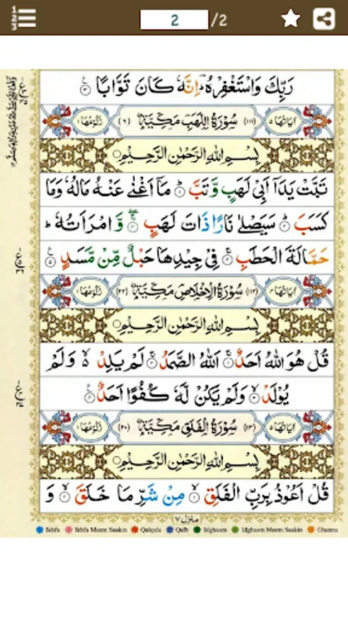 المصحف المعلم جزء 30 سورة المســـد ترتيب السورة فى المصحف (111) عدد آياتها (5)