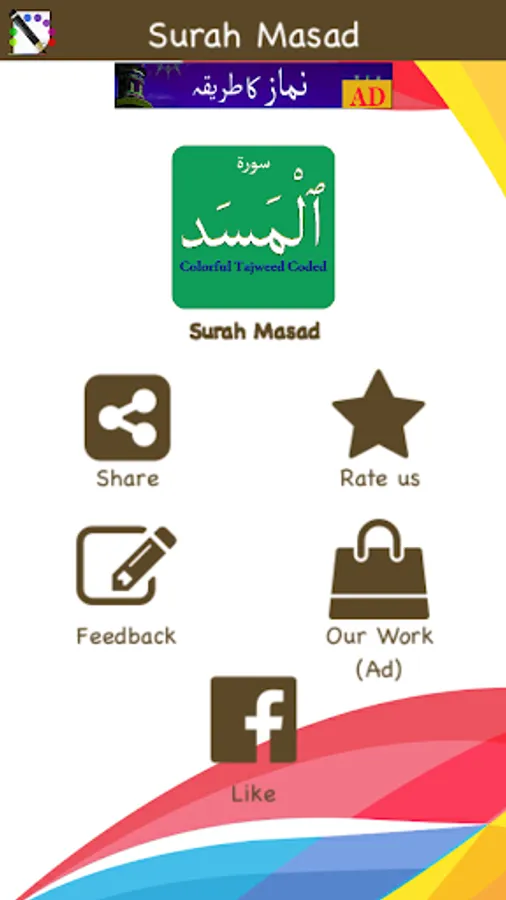 Al-Masad (Arabic: المسد‎, meaning "Twisted Strands" or "The Palm Fiber") is the 111th chapter (surah) of the Quran with 5 verses (āyāt). This surah is positioned in Para 30 which is also known as Juz Amma (Juz' 30).