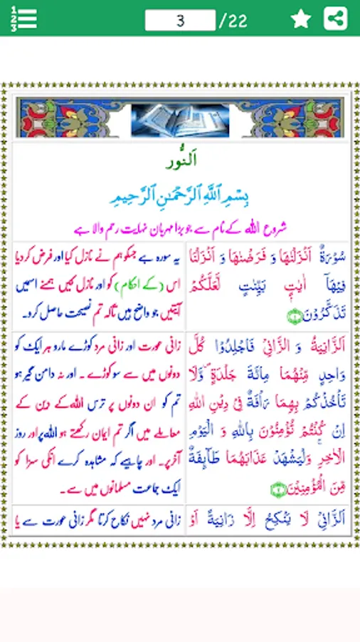 التطبيق يقدم لكم سورة النور بصوت ومكتوبة بدون انترنت.