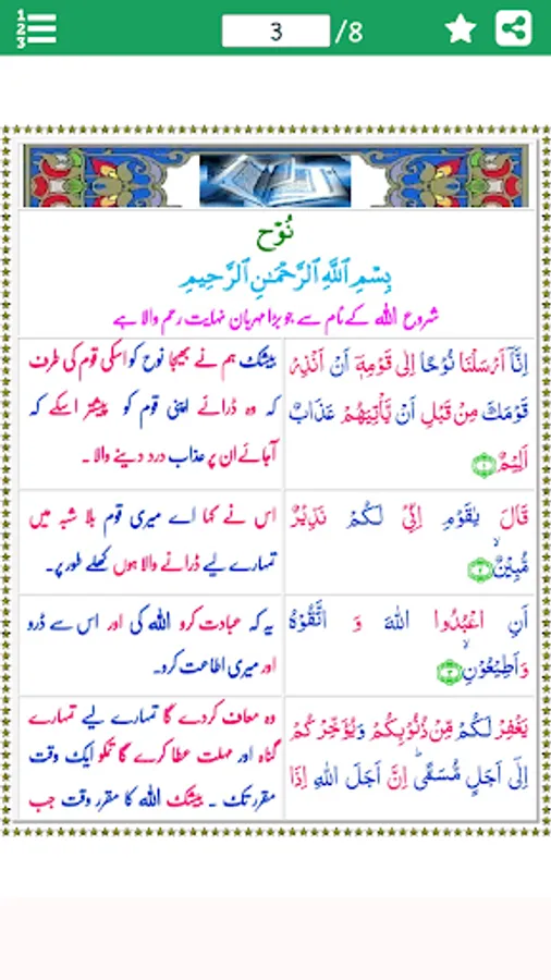 Verses 1–4 discuss the message Nuh received from Allah to share with his community, to serve Allah.