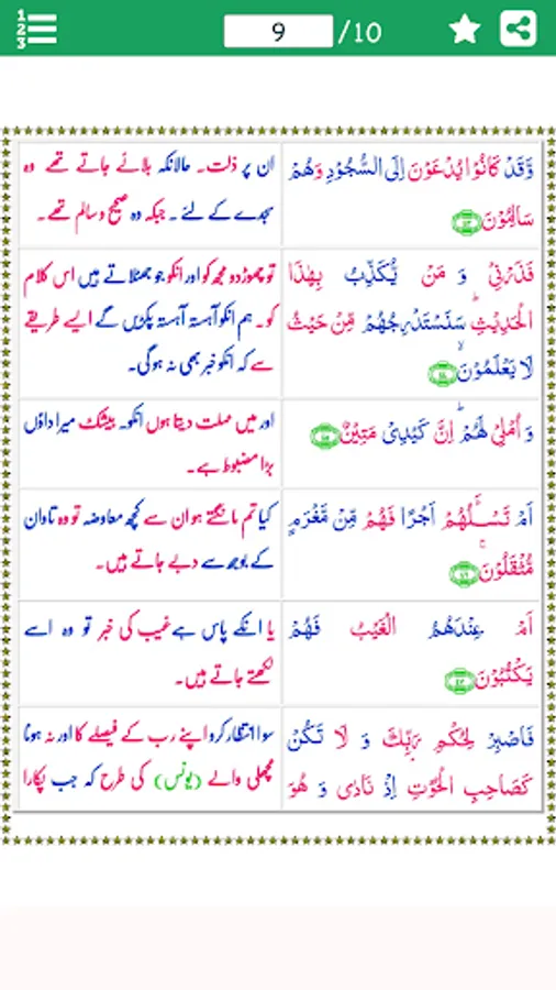 al-Qalam (Arabic: القلم, "The Pen") is the sixty-eighth chapter (surah) of the Qur'an with 52 verses (āyāt). The Surat describes Allah's justice and the judgment day. Three notable themes of this Surah are response to the opponents objections, warning and admonition to the disbelievers, and exhortation of patience to the Islamic prophet Hazrat Muhammad (PBUH). Chronologically, this is the first appearance of any of the "disjointed" [i.e., single] letters (muqattaat) which precede a number of the surahs of the Qur'an (AlQuran / Alwhile in Quranic Order this is the last surah to have the appearance of (muqattaat).