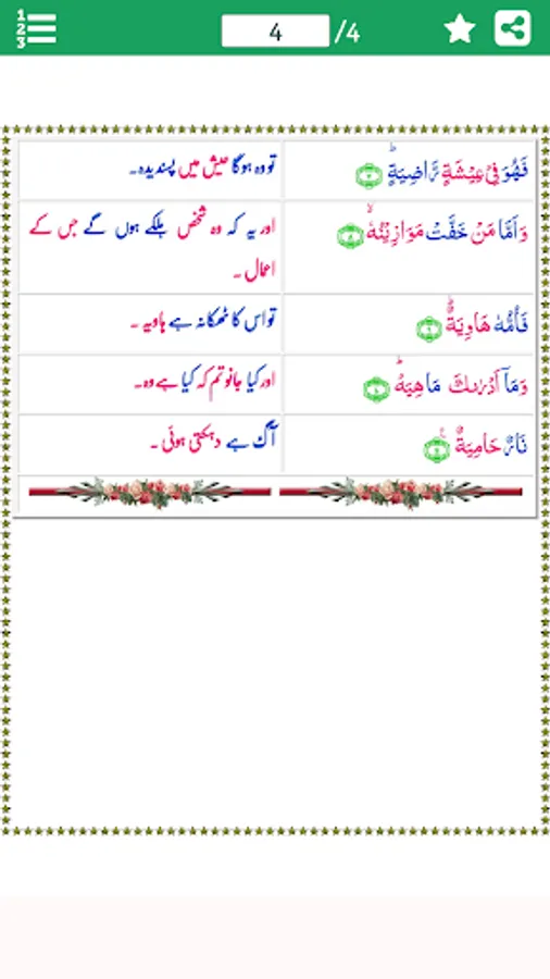 Al-Qāriʻah (Arabic: القارعة) is the 101st chapter (sūrah) of the Quran with 11 verses (āyāt). This sorat is positioned in Para 30 which is also known as Juz Amma (Juz' 30). This chapter takes its name from its first word "qariah", referring to the Quranic view of the end time and eschatology. "Qariah" has been translated to calamity, striking, catastrophe, clatterer, etc. According to Ibn Kathir, a traditionalistic exegete, Al-Qaria is one of the names of the Day of Judgement, like Al-Haaqqa, At-Tammah, As-Sakhkhah and others. After a picturesque depiction of judgement day in first 5 ayaat, next 4 ayat describe that God's Court will be established and the people will be called upon to account for their deeds. The people whose good deeds will be heavier, will be blessed with bliss and happiness, and the people whose good deeds will be lighter, will be cast into the burning fire of hell. The last 2 ayaat describe Háwíyah in similar emphatic way as Al-Qari'ah was emphasized in the beginning.
