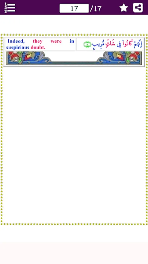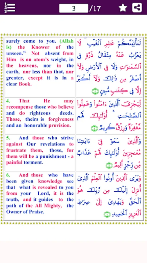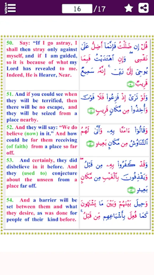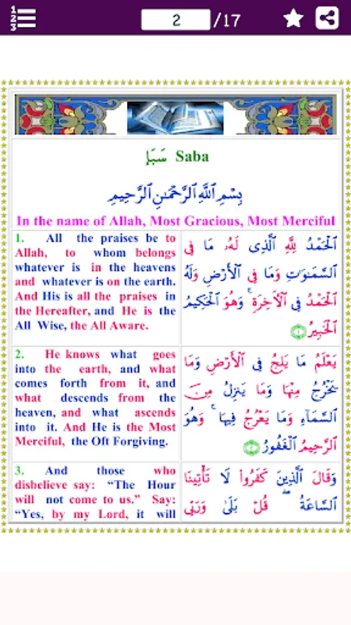 Saba’ (Arabic: سَبَأ, "Sheba") is the 34th chapter (sūrah) of the Qur'an with 54 verses (āyāt). It discusses the lives of Solomon and David, a story about the people of Sheba, challenges and warnings against the disbelievers as well as the promises related to the Day of Judgment.