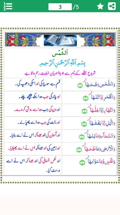 "He who recites it (Surah Shams) is like he who has given charity (in the way of Allah) to all things that the sun and the moon shine upon.”
