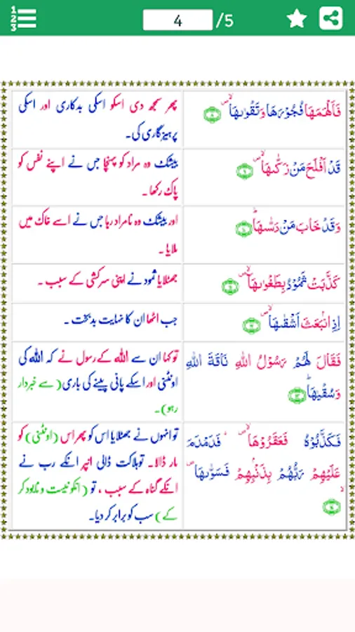 Surat Ash-Shams (Arabic: الشمس, "The Sun") is the 91st sura of the Qur'an with 15 ayat. This surah is positioned in Para 30 which is also known as Juz Amma (Juz' 30). It opens with a series of solemn oaths sworn on various astronomical phenomena, the first of which, "by the sun", gives the sura its name, then on the human soul itself. It then describes the fate of Thamud, a formerly prosperous extinct Arab tribe. The prophet Saleh urged them to worship God alone, and commanded them in God's name to preserve a certain she-camel; they disobeyed and continued to reject his message, and God destroyed them all except those who had followed Salih.