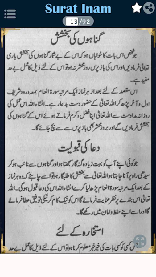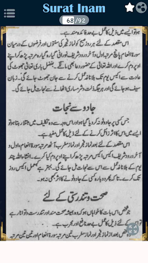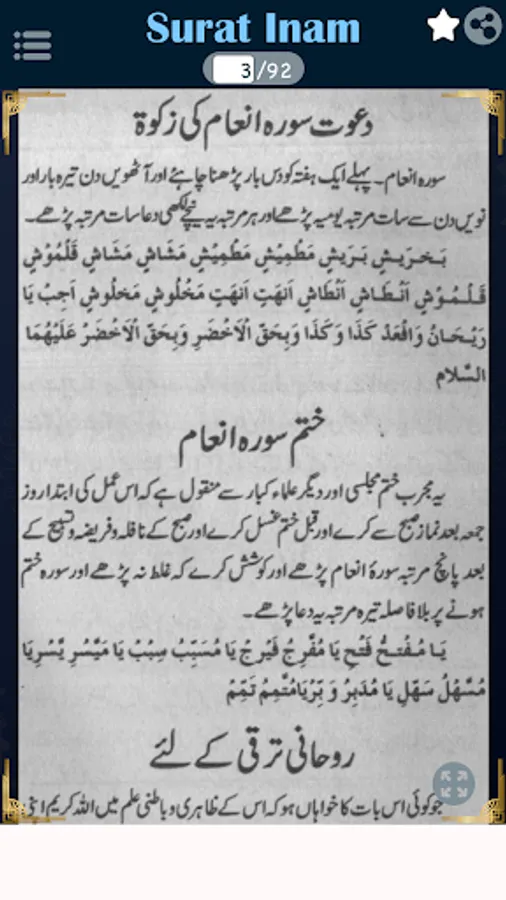 In this book, you can read about Surah e Inaam, Fazail Surah e Inaam, Dawat Surah Inaam ki Zakat, Khatm Surah Inaam, Ruhani Taraqi k liye Wazaif, Qalb ki Safai, yaqsooi k liye, Qurb e Illahi, Hasool e Ibadat, Burai sy bacho, Jannat ka Khawish mand, Gunahoon ki Bakhsis, Qaboleyat ki Dua, Muskal Kushai k liye Dua, Pershani ka Hal, Kamyab Zindigi, Qaid sy rehai, Hafazat e Saffar, Drendoon sy Hafazat, Dengi Machar sy Hafazat, Aman o Sukun K liye, Makan Khali karana, Dushman par fathayabi, Haar ko jeet, Zuban bandi, Fatha o Nusrat, Muskal sy Nijaat, Khel main kamyabi, Namayan Kamyabi, Qarz sy nijaat, Gumshuda ki wapsi, Hajat barabri, Mad e Muqbal par fatha, Gareebi sy nijaat, Bemari sy nijaat, Risk main izafa, Dokan main barkat, karobar ki taraki, Hasool e Mulazmat, Hasool e Rozgar, Rozgar main barkat, Naik ullad k Liye, Sulha o safai K liye, Nazar e Bat k liye, Shatani shar sy nijaat K liye, Bad Zubani sy nijaat, Jadu sy nijaat, Burai sy nijaat, Shadi ki rukawat, Reshty main rukawat, Shohar ki farmabardari, Martabay k liye, Mukam pany k liye, Sehatyabi k leya, Muzi marz sy nijaat, Dard k liye, Jismani Dard K liye, Sir main Pani bar jana, Tez quwat e hafiza, Damag tez karny k liye, Gam sy nijaat, Khushi o Musarat k liye, Bukhar k liye, Dard e Kan k liye, Dant ka dard, Falaj sy bachao, Senay main Dard, Damy sy nijaat, Ankhon ka dard, Nazla zukam k liye, Heart Attack in Urdu and Hindi PDF.