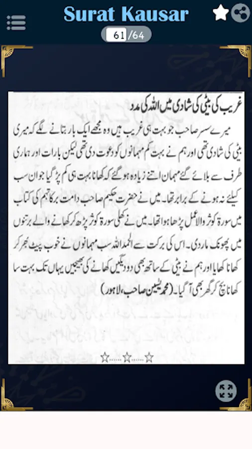 On the day of the judgment, every Muslim will wish to drink the water of fountain Kausar where our Holy Prophet (Peace Be Upon Him) will be. If you are a strong believer and recite this Surah, Allah will list you among those who will drink the water of this fountain.