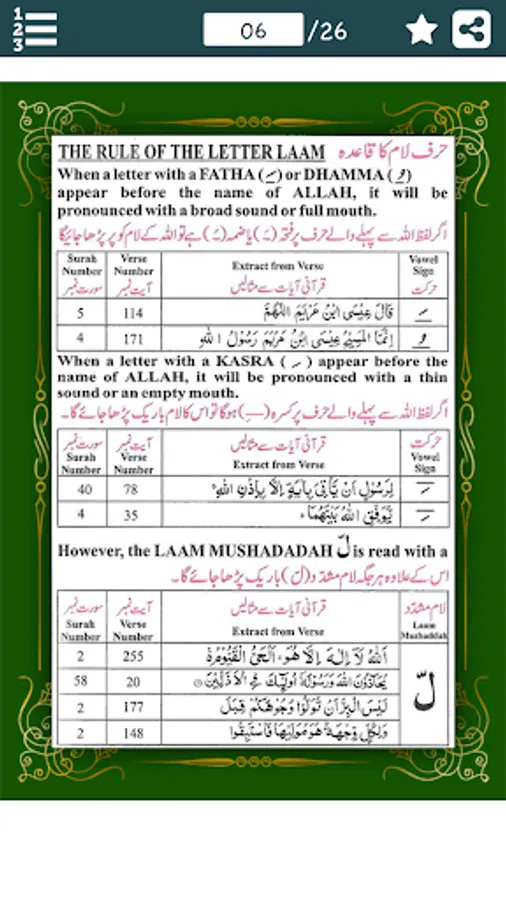 Tajweed Rules is complete guide to understand all ahkaam / rules which are neccessary for reciting Holy Quran. The most important part of Tajweed is learning about correct position of the organs of speech and the manner of articulation.