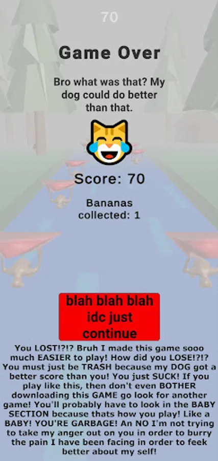ok so basically you're a monkey, right? so you take that mokey and you avoid hitting the bad monkeys and then you win!! Super easy I actually made and beat the game in my sleep, so you should be able to beat it first try.