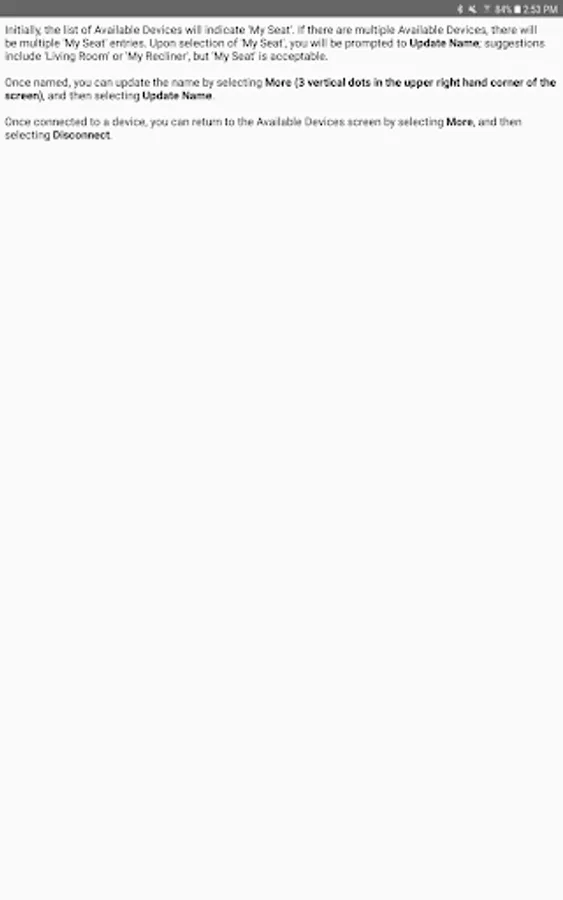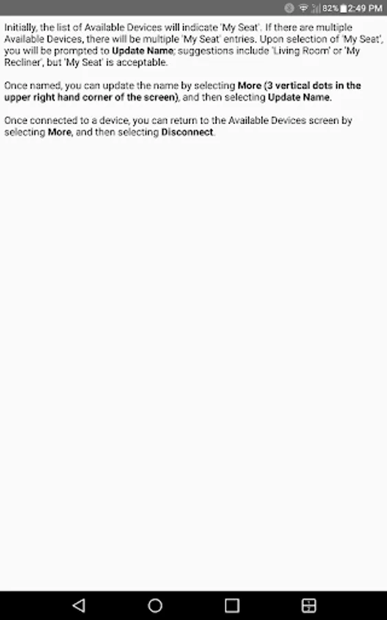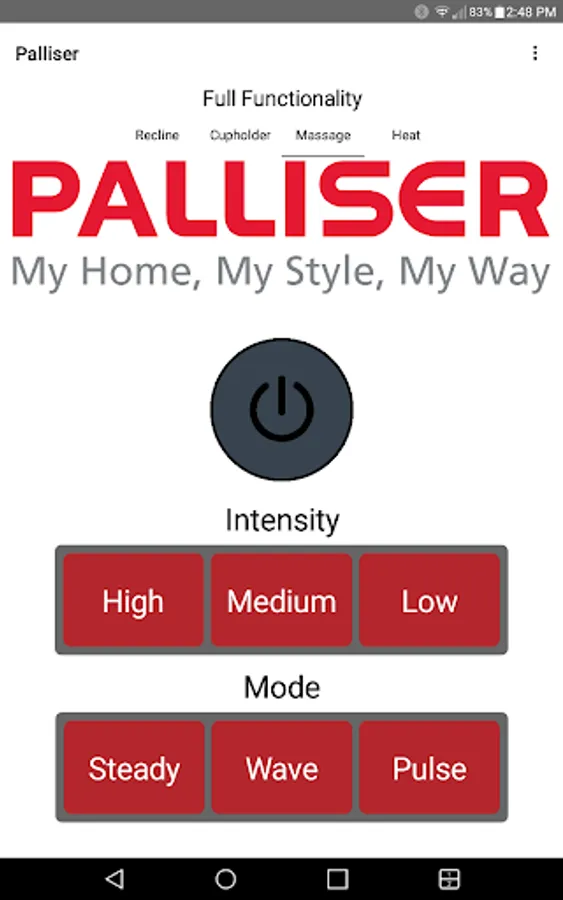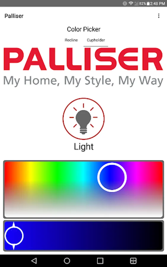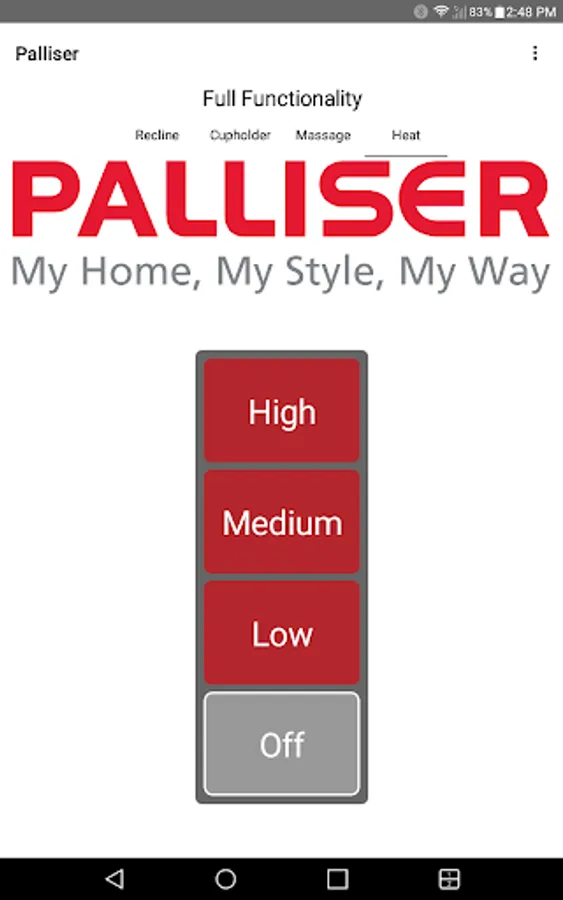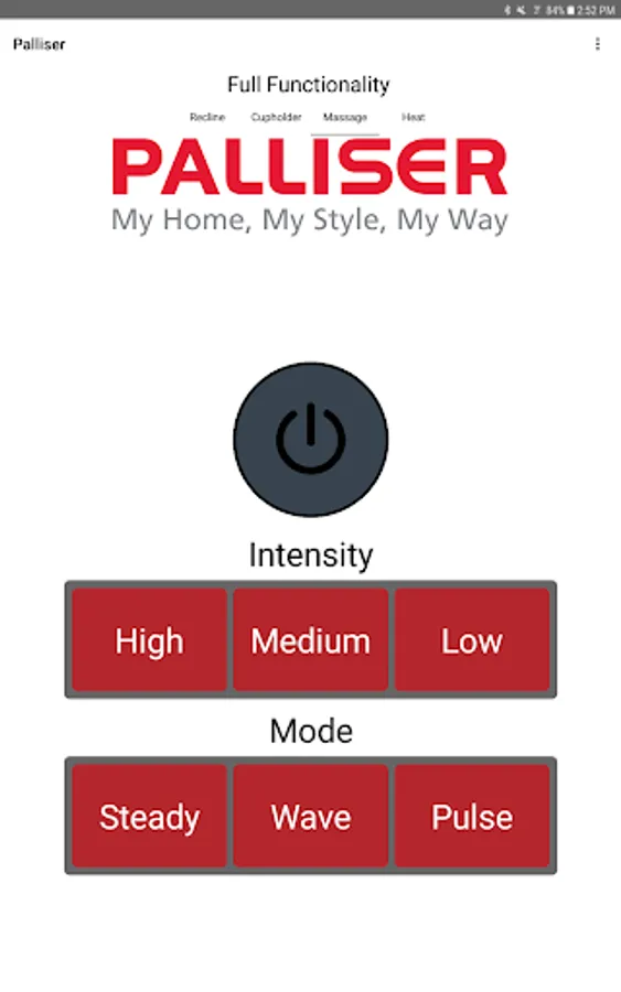 The app allows you to connect to your enabled furniture via Bluetooth from your phone or tablet. Depending on the options, you can control the electric motors that move your chair or sofa and may include power recline, power headrest, power lumbar support, memory functions, home function, light, cooling cup, heat, and massage.