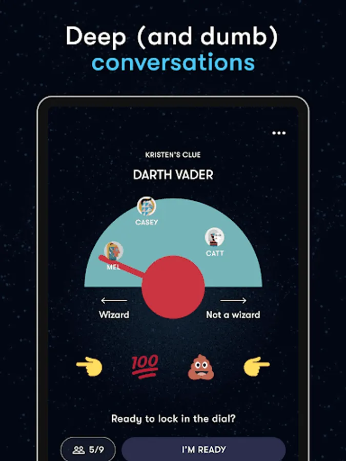 The Wavelength app is an evolution of the hit boardgame that allows you to play remotely or in person. It features loads of new content and designs, like real-time synchronous dial movements and emoji reactions.