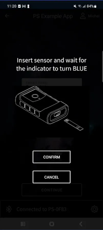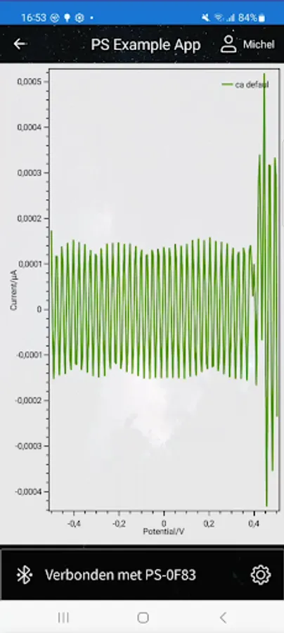 The PSExampleApp is a simple open-source application that guides a user to do a measurement with a PalmSens instrument to measure concentrations in a (liquid) sample. The app can be re-configured without code for use with (bio)sensors measuring a specific analyte using a linear calibration curve.