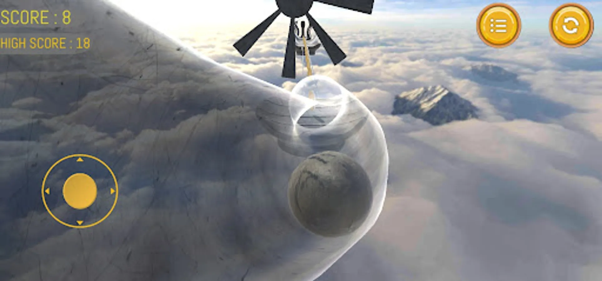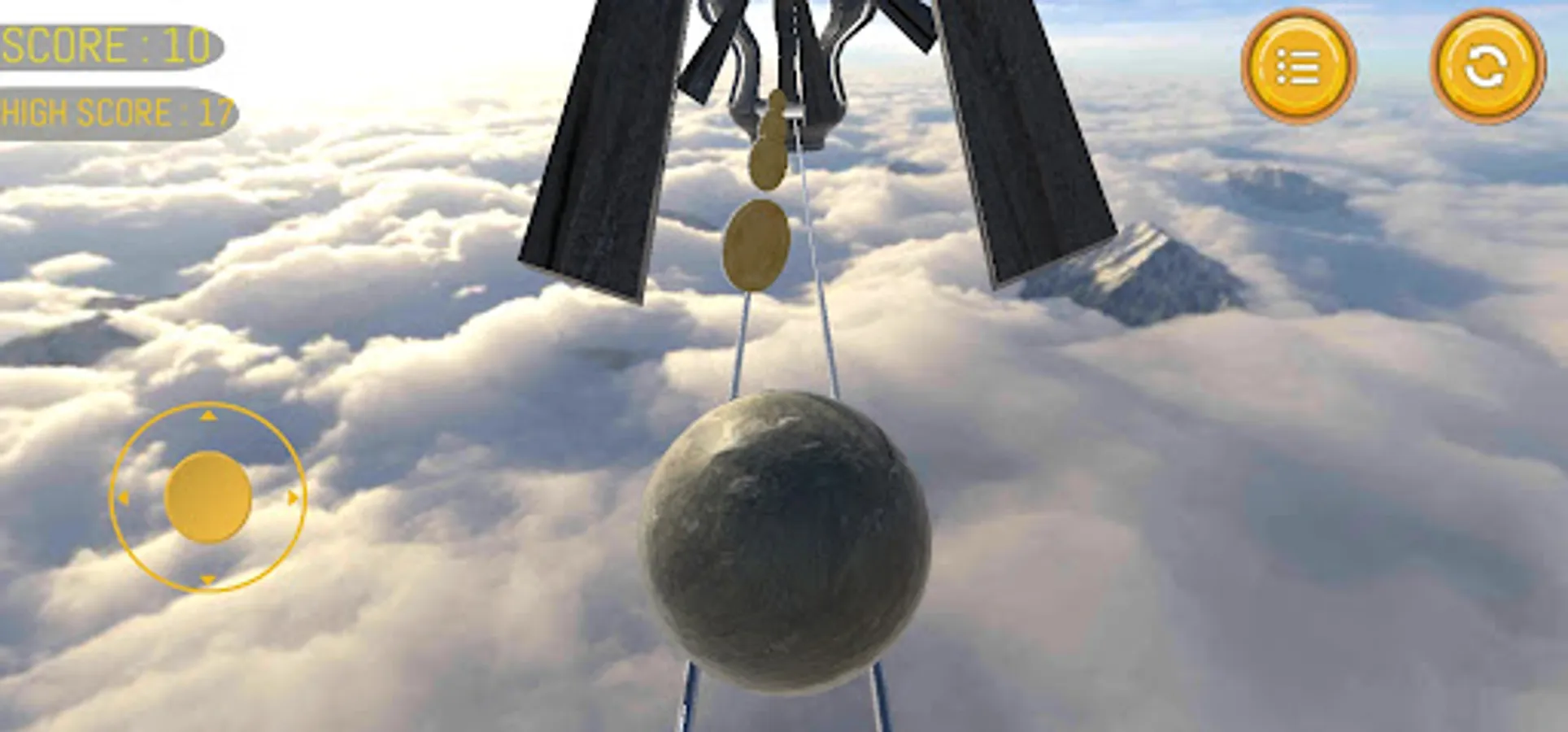 The whole surrounding is full of sky and you have to balance the rock ball towards the destination by avoiding the hammers, catapult, rolling ground, and by rolling over the joint pipes.