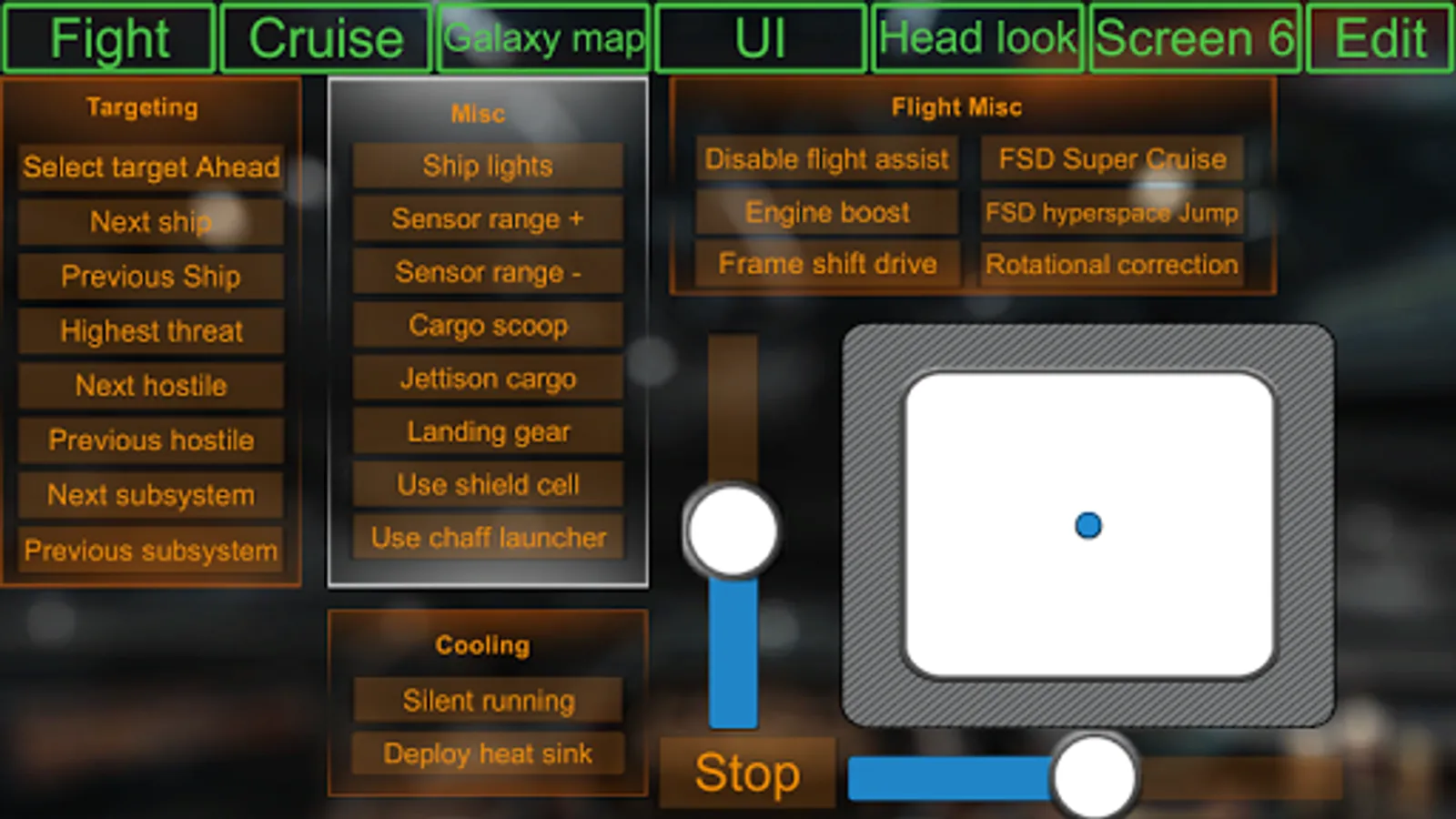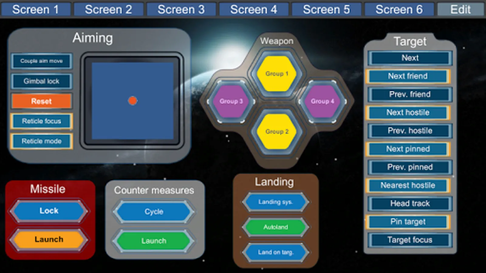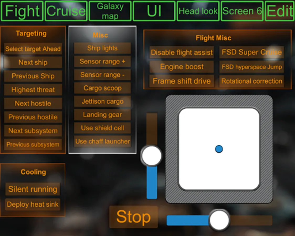 Custom interfaces are available for Star Citizen, Elite: Dangerous, Kerbal Space Program (KSP), the Sims, one generic gamepad and more from the community !