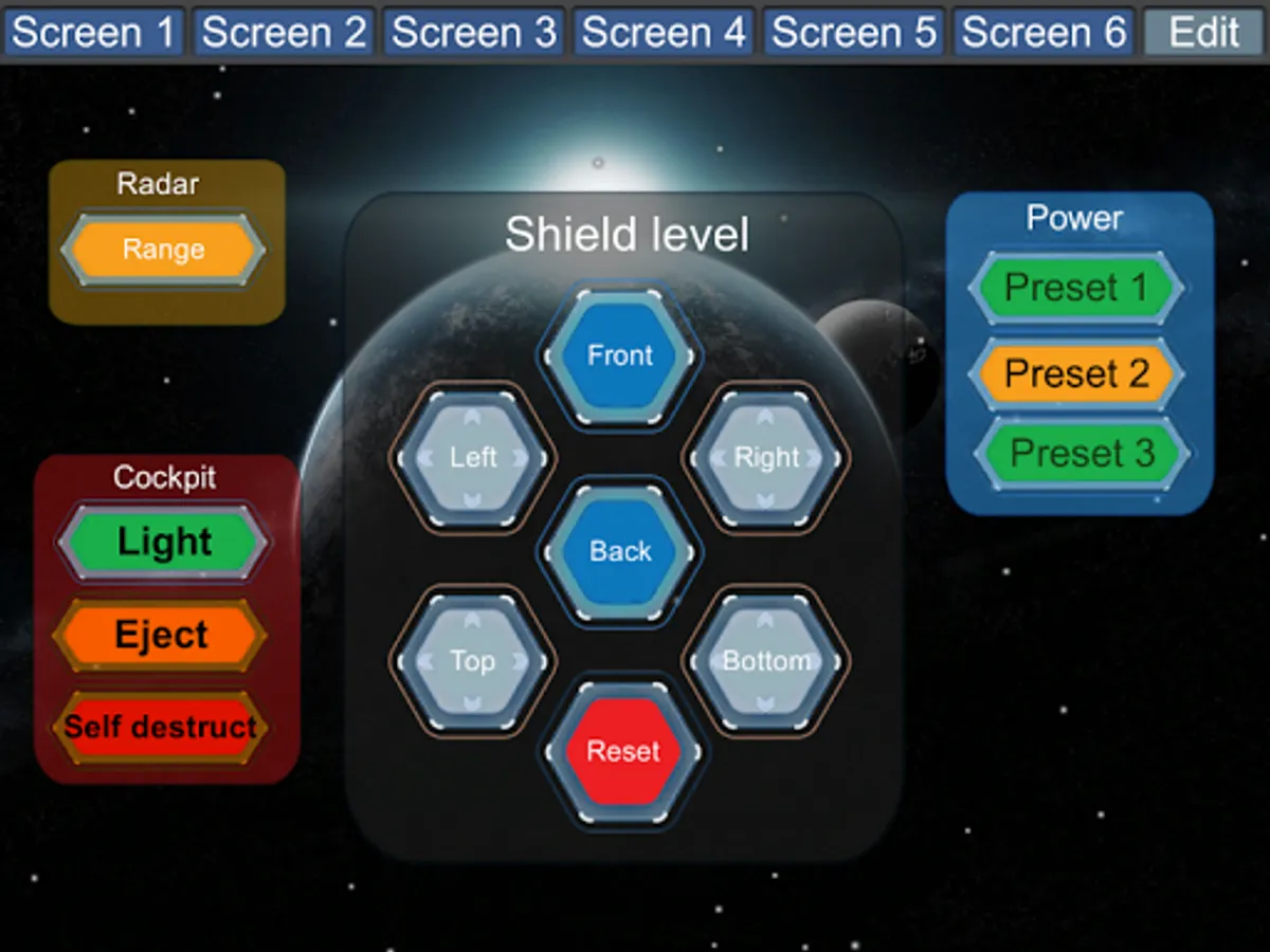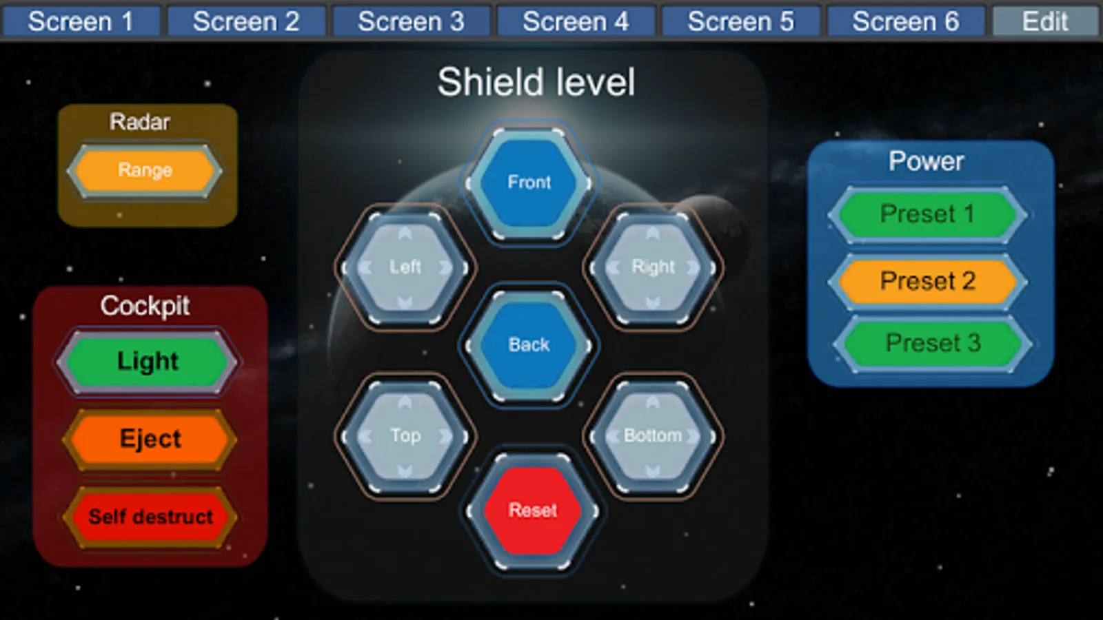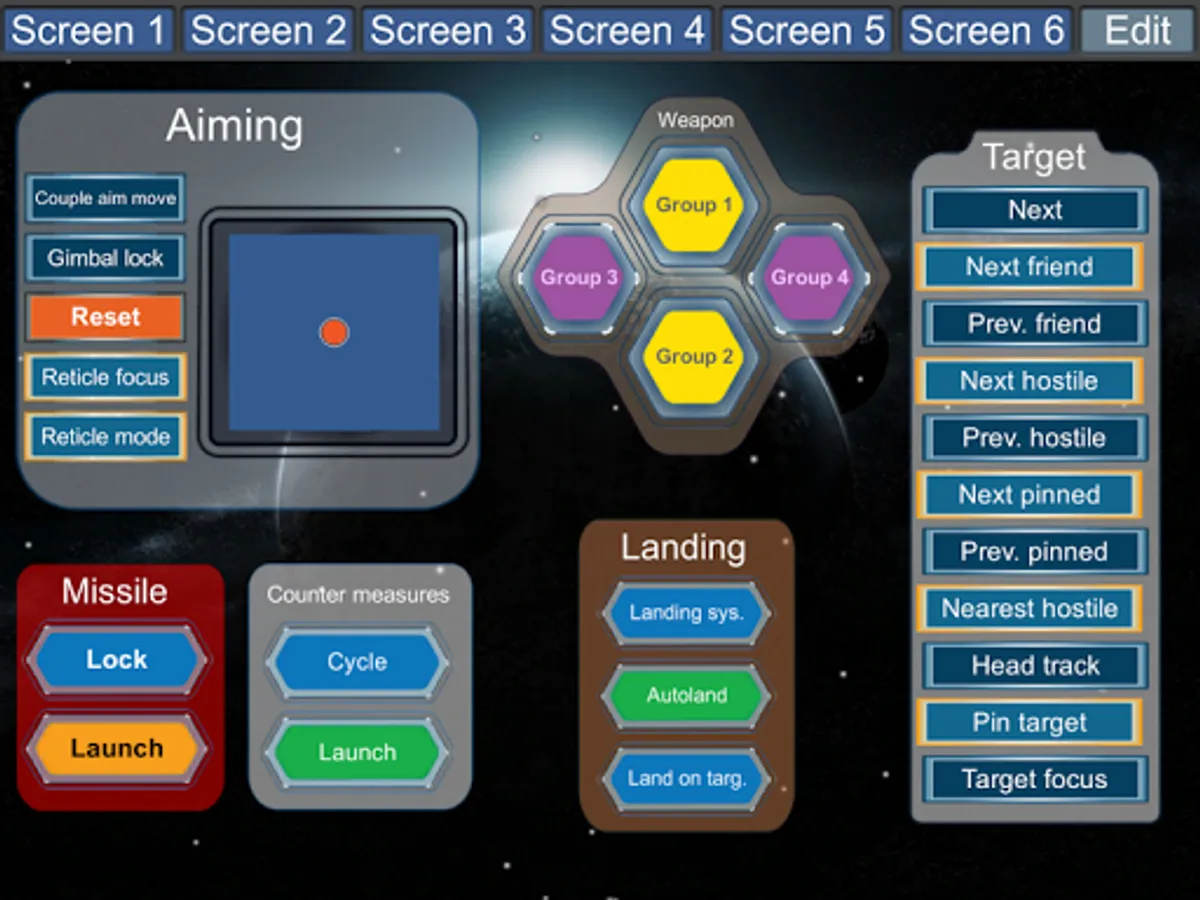 The Screen selection Bar allow you to switch on the fly between 6 different editable zones allowing you to create dedicated action UI such as for fighting, sneaking, crafting, manage your engine or power plant and anything you want !