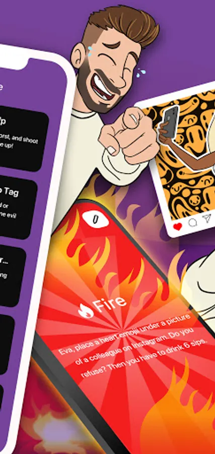 The format of our drinking games allows you to play one-on-one or team up. Start with easy and hilarious challenges, and don’t be afraid to try the extreme challenges. Dull and uneventful socializing, never again!
