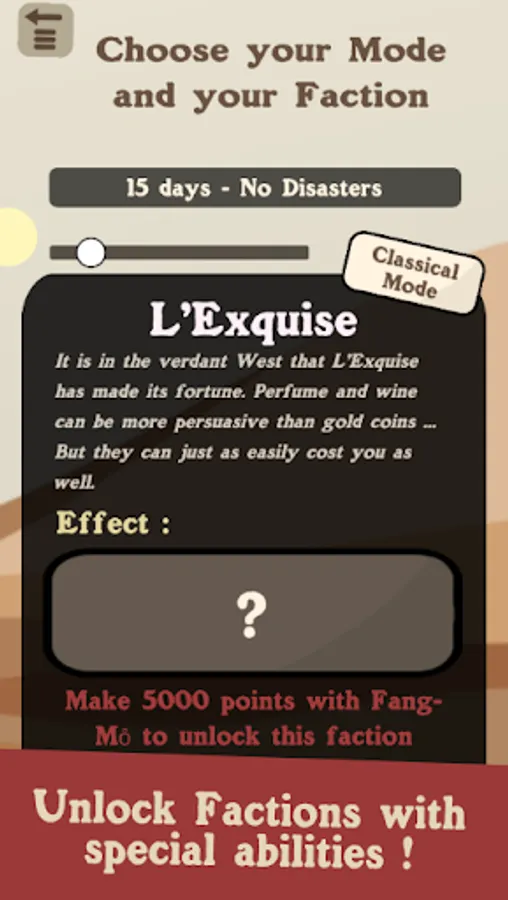 Buy, sell and trade resources to become the richest trader of your Faction! Solve challenging puzzles by choosing the best strategy for your merchant caravan. Grow your business, trade resources and solve all the Faction challenges. Make profit and become rich! Take the good decisions to earn money and upgrade your caravan.