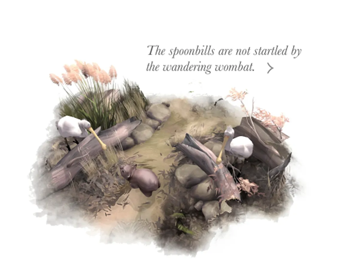Wander through a beautifully stylised interpretation of Australia, and watch as you bring the illustrated landscape to life, through vibrant watercolours and sounds.