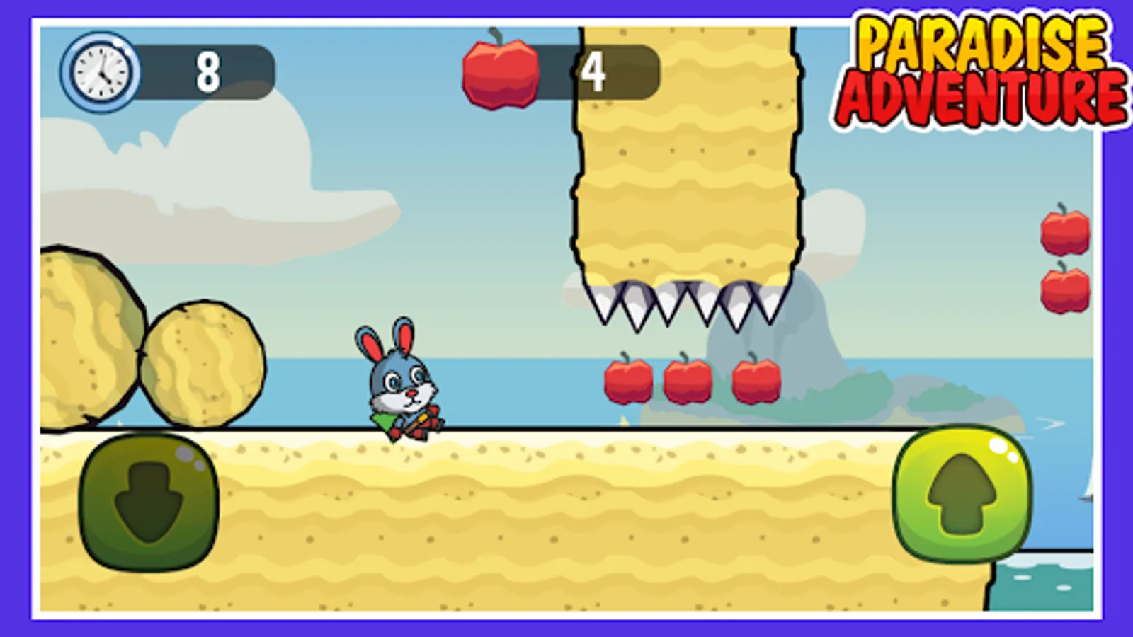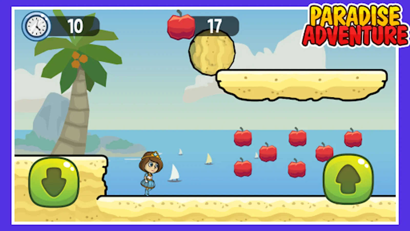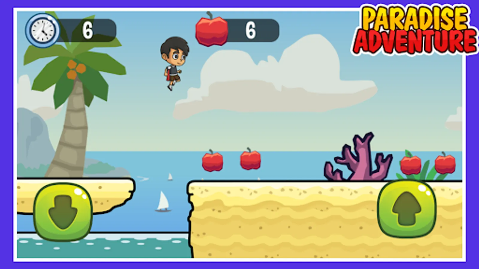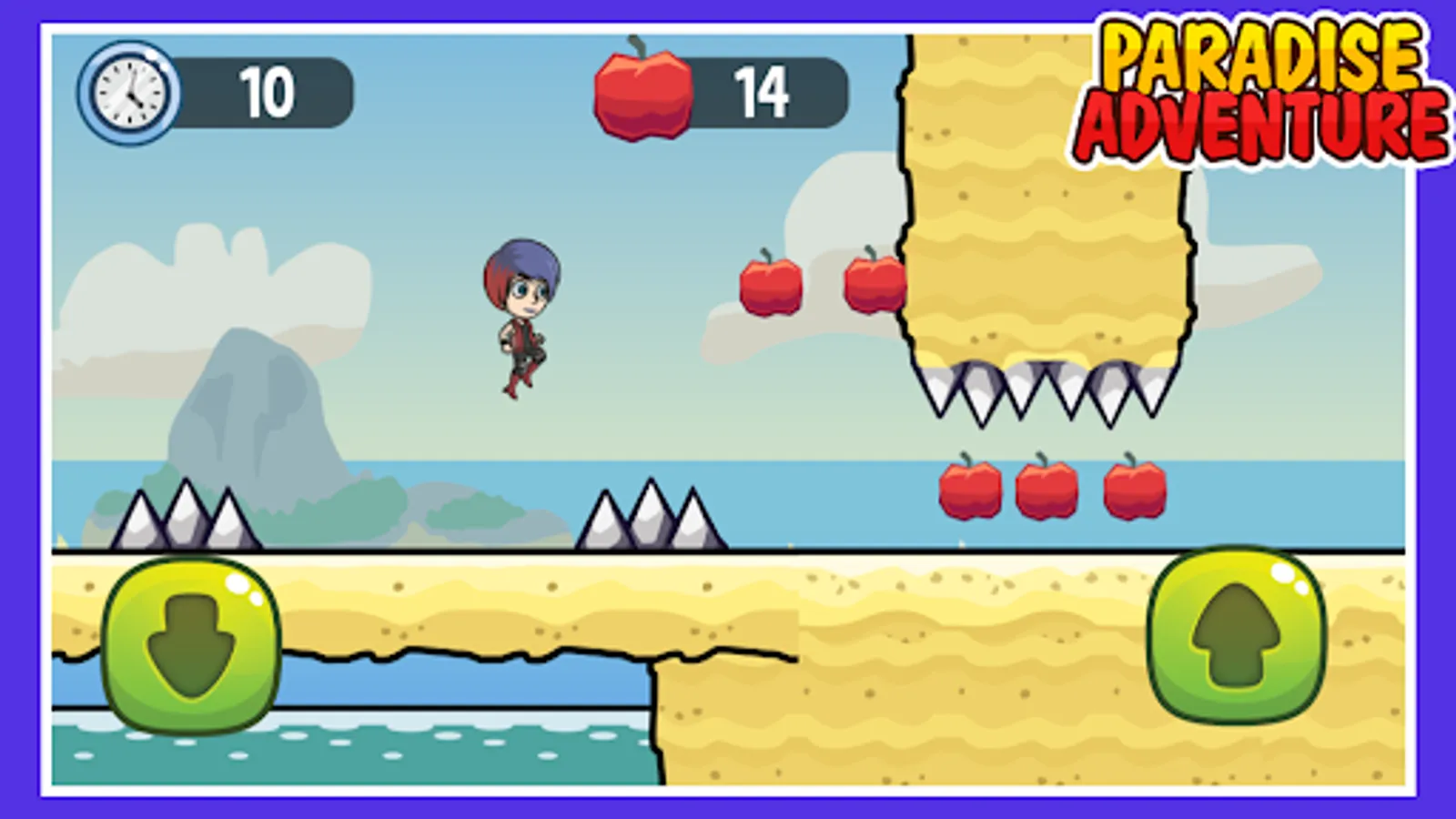 Paradise Adventure - Running Heroes In the Beach Area , Jump , collect apples , Slide under obstacles and Get the best score to challenge your friends