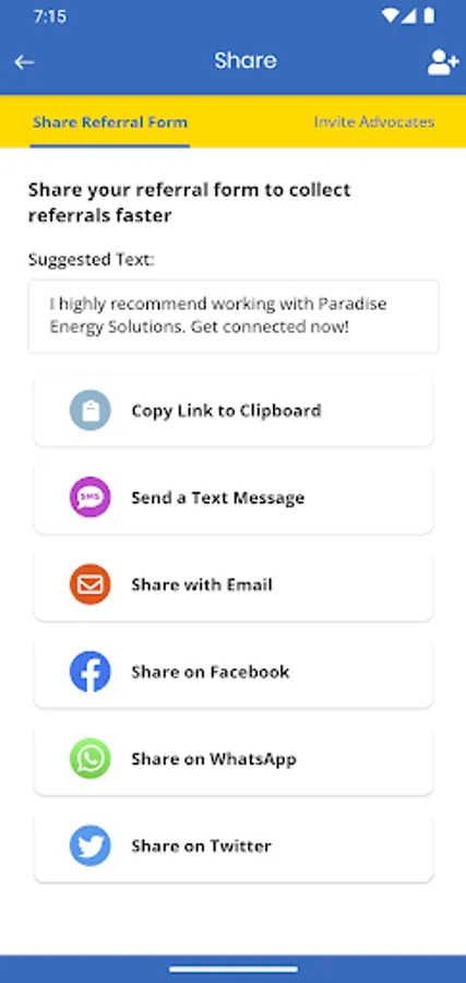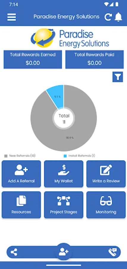 Paradise Energy Solutions is a free app available for anyone to download and is used for those that want to earn rewards by sending referrals to Paradise Energy Solutions. It is as simple as downloading the App, selecting the sales rep and registering. Once registered, you can begin sending referrals right away. It is the one app that will allow the user to easily submit referrals to Paradise Energy Solutions and track the progress of your referral and rewards right on your mobile device. Referring has never been so easy.