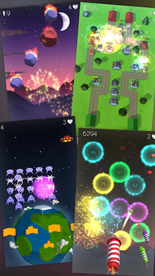 Play any of four firework games to unlock more fireworks, firework letters, numbers, and shapes. If fireworks aren't your thing then there's a wide range of other special effects such as missiles, fire, rain, snow, lightning and many more.
