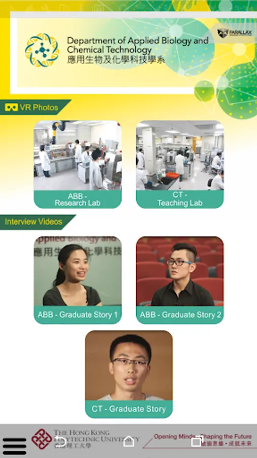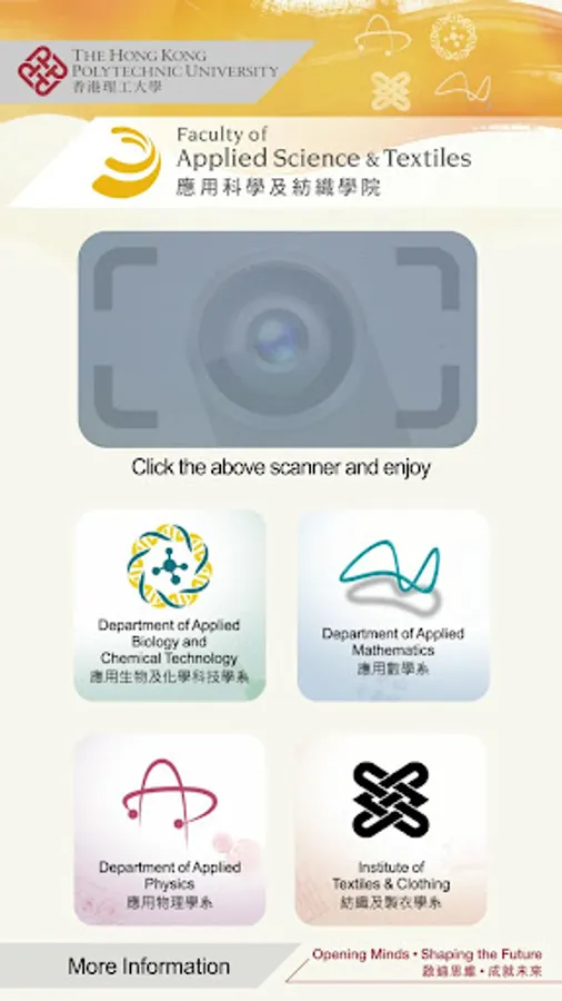 The Hong Kong Polytechnic University’s Faculty of Applied Science & Textiles is your quintessential mobile application to experience the school life and learn about what the faculty has to offer.